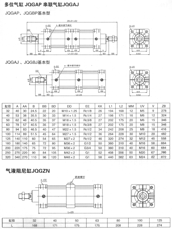 多位气缸JQGAP 串联气缸JQGAJ